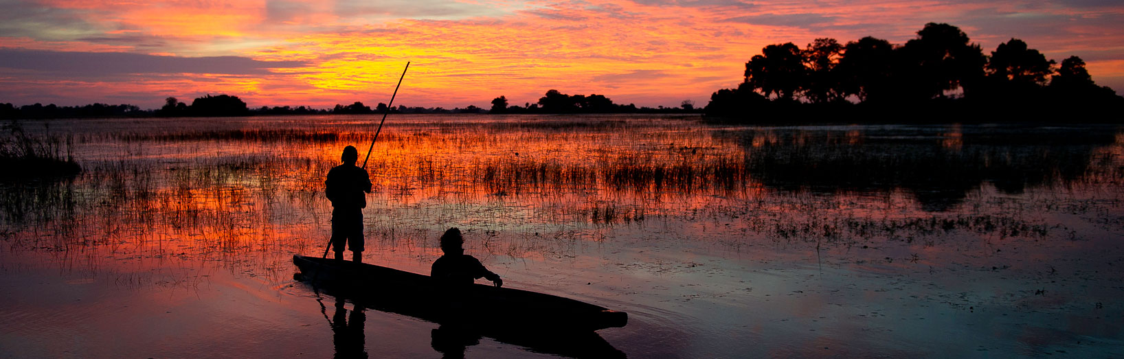 Okavango Delta The Okavango Delta is iconic and arguably one of the best protected ecosystems in Africa. In terms of remote locations and pristine landscapes the Okavango offers the highest quality in experience but it is important to choose the right concessions. The rain falls far away to the north in the Angolan highlands and reaches the Kalahari desert after a significant delay. Due to the tectonic uplift and shape of the land in the region the water never reaches the sea; it instead seeps slowly into the Kalahrai desert sands, in turn creating this fertile wilderness. Strangely, but due to the water originating from far away, the Delta’s waters are highest when it is not raining in the local area. They then drop during the sporadic, heavy afternoon showers of the region’s own brief rainy season. The Okavango’s waters draw in the Kalahari wildlife from far and wide, creating a rich and fertile game-viewing paradise. The private concessions which cover the entire region are almost exclusively reached by small aircraft, and visitor numbers are strictly kept low impact but high value. Choosing the right camps comes down to timing and matching clients’ interests to what can be delivered. Chief’s Island in the centre is the largest area of dry land in the Delta and contains the famous Mombo and Little Mombo camps. These are I prime locations where the water of the Delta is split by the land of Chief’s Island and the wildlife is prolific year-round. Some lodges offer both wet (water channels, motorboats, dugout mokoro canoe trips) and dry (game drives over drier land, some walking) activities. However often camps lean more towards wet activities or dry activities, meaning it is often best to do a mix of camp style. Abu camp in the south has one of the largest areas of both wet and dry land in which to explore, as well as offering elephant safaris. Vumbura concession is incredibly pretty and has some interesting local species such as herds of sable antelope. However, for the raw buffalo and lion interactions of the Delta, there is very little better than the Duba concesion and its Duba Plains Camp.